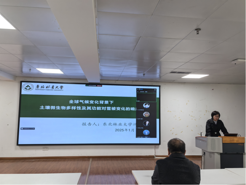 冯富娟教授进行题为《全球气候变化背景下土壤微生物多样性及其功能对雪被变化的响应》的学术讲座,介绍了全球气候变暖导致积雪变薄,从而引发土壤冻融模式和春季水分输入的改变,以及对土壤微生物群落的多样性及其功能产生重要影响。